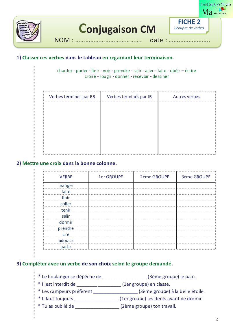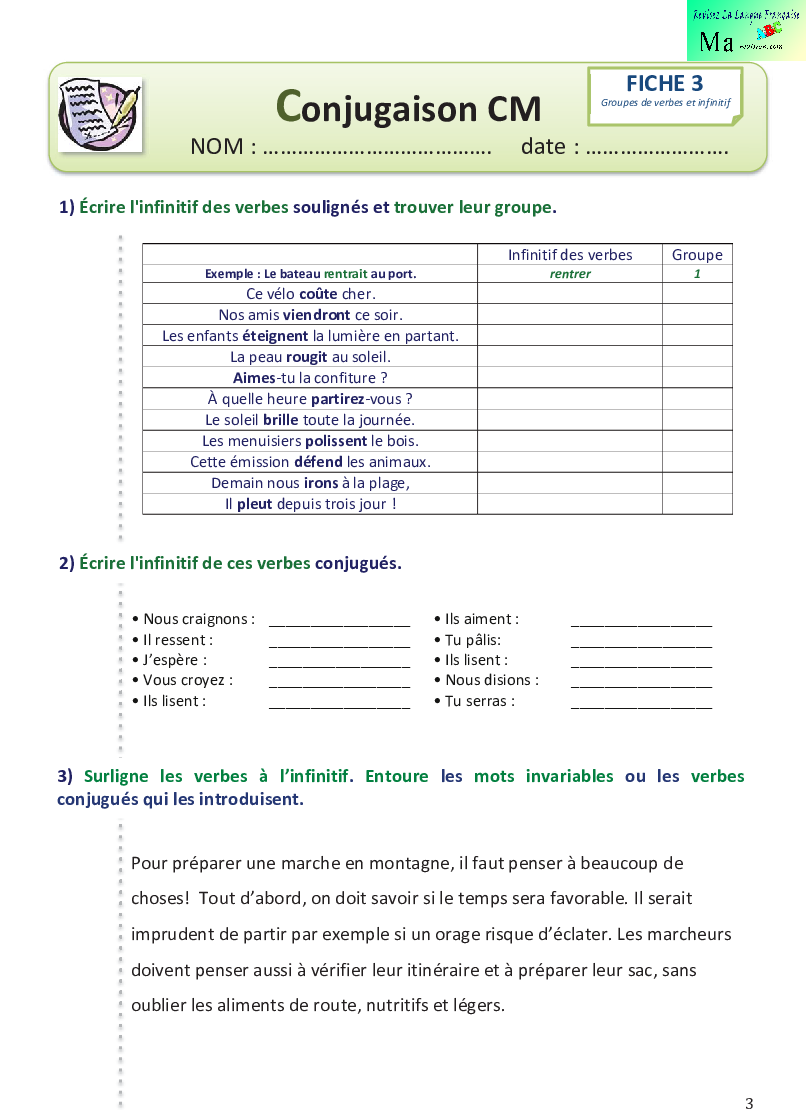 exercice sur l infitif et group de verbe