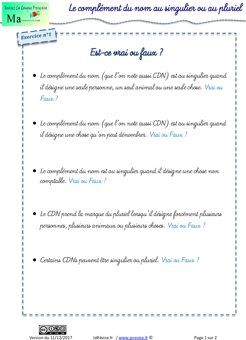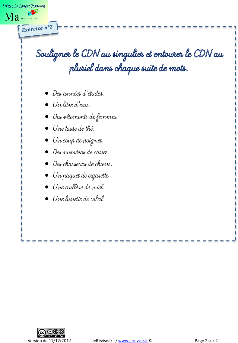 Leçon complement du nom singulier ou pluriel