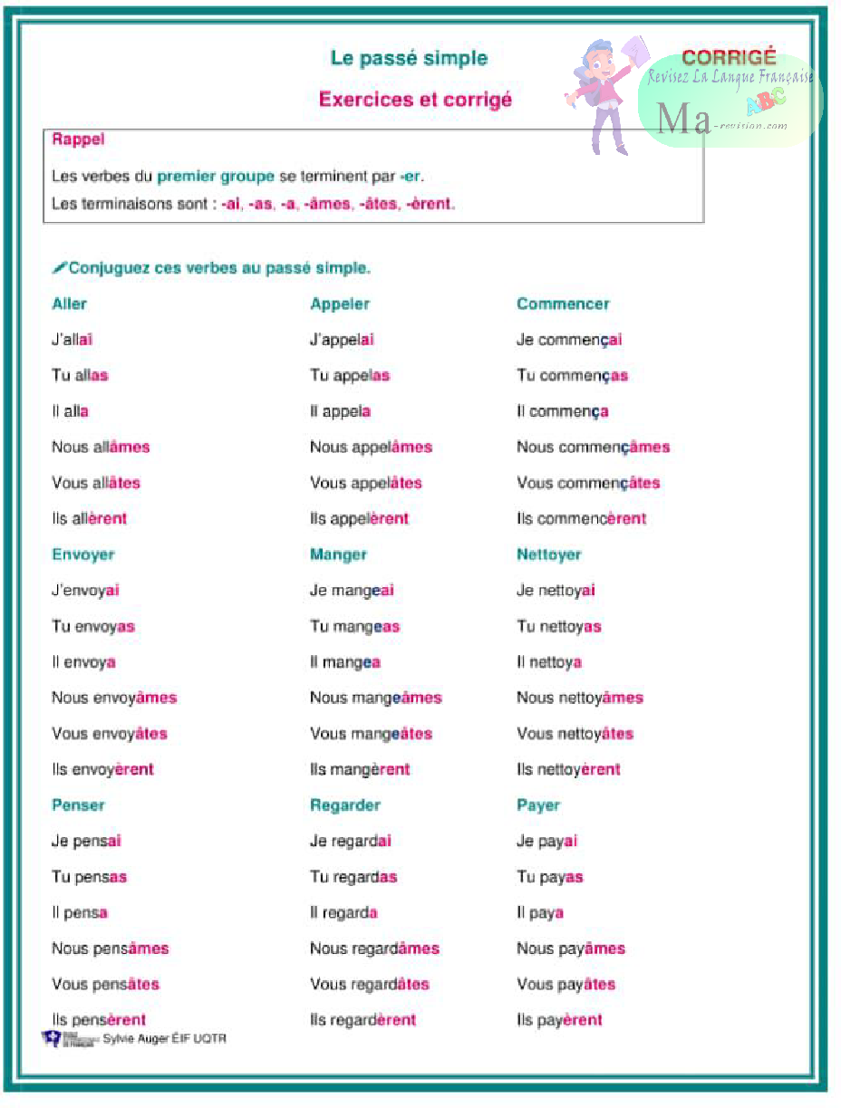 le passe simple exemples de verbes conjugues