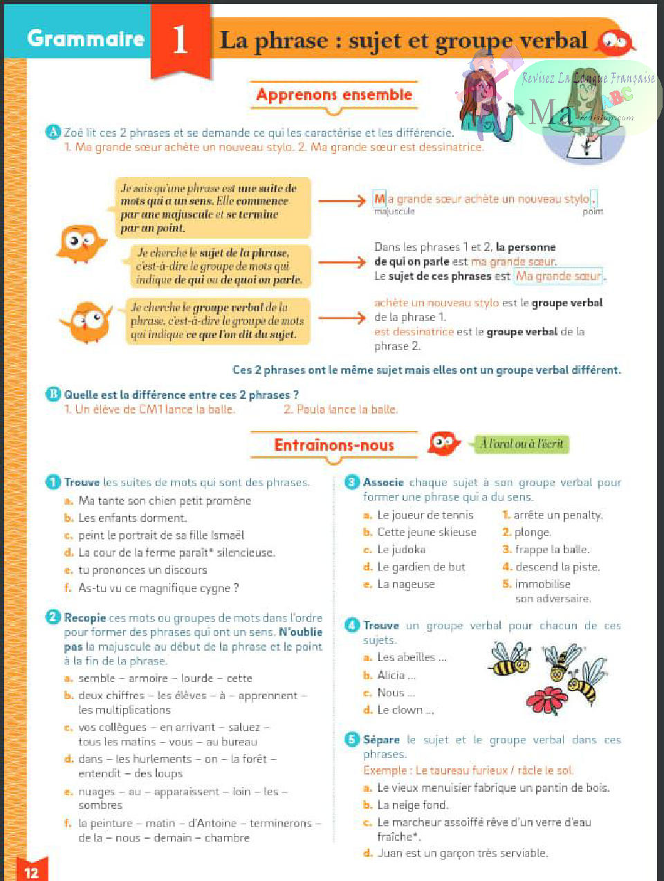 la phrase sujet et groupe verbal niveau primaire