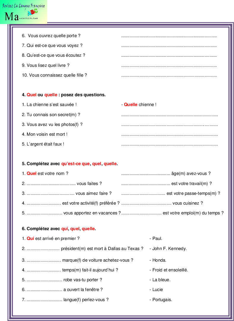 L interrogation avec inversion Exercices et corrige