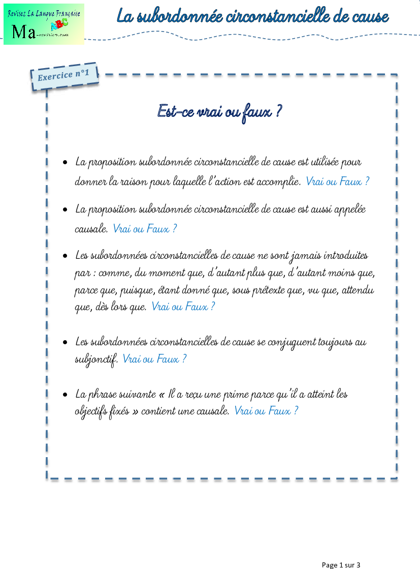 Leçon propositions subordonnees circonstancielles cause